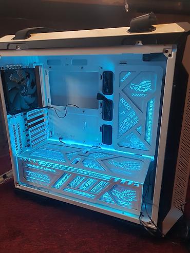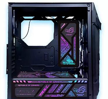 - Дизайн: фронтальная панель серии TUF, внутренняя декоративная подсветка ROG (RGB/неоновая), акриловые/металлические панели с логотипами Republic of Gamers.