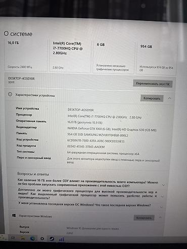 - Процессор: Intel Core i7-7700HQ, 4 ядра/8 потоков, базовая частота 2.80 ГГц