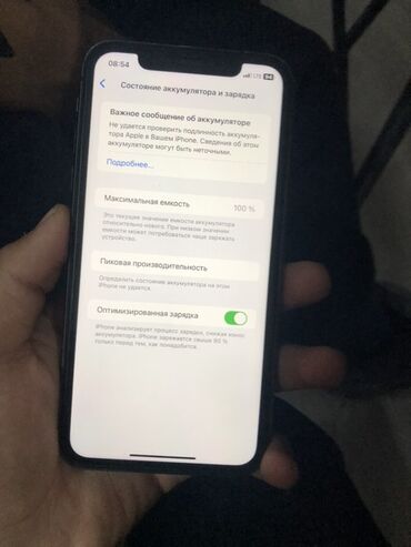 - Аккумулятор: в разделе «Состояние аккумулятора» указана максимальная емкость 100%; сообщение системы сообщает, что не удается проверить подлинность аккумулятора. Включена функция «Оптимизированная зарядка»