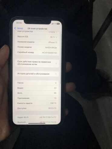 IPhone 11, 128 ГБ, черный - Модель: iPhone 11 (модель MWM02KH/A) - Память: 128 ГБ (доступно около 115 ГБ на фото) - iOS: 18.7.2 - Серийный номер на скриншоте: FK1ZGGSCN73D - Экран 6.1" Liquid Reti...