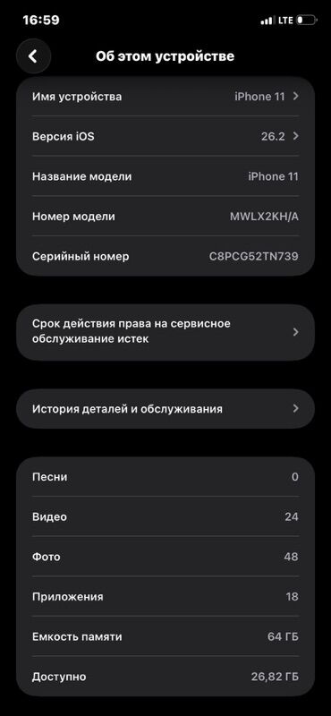 - Память: 64 ГБ (доступно ~26,8 ГБ)