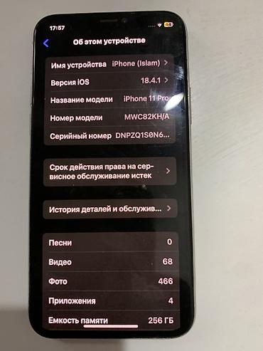 - «Об этом устройстве»: модель iPhone 11 Pro, iOS 18.4.1, объём 256 ГБ.