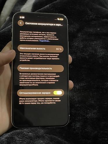- Аккумулятор: максимальная ёмкость 86% (скрин в галерее), включена «Оптимизированная зарядка»