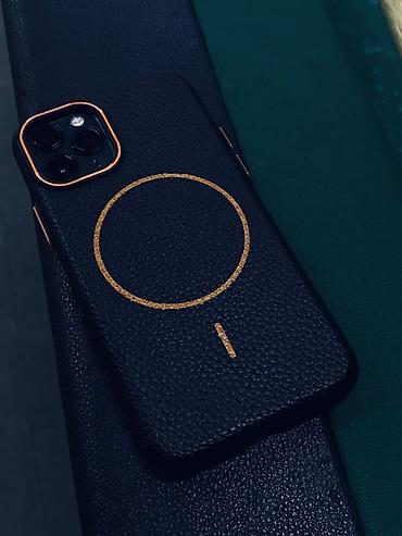 Смартфон на фото с комплектным чехлом MagSafe.