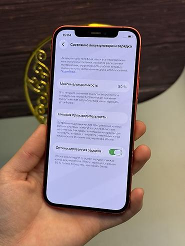 IPhone 12, Б/у, 128 ГБ, Красный, Зарядное устройство, Защитное стекло, Чехол, В рассрочку, 81 %