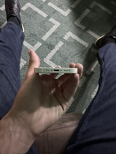 Смартфон Apple iPhone (серия с плоскими гранями), компактный корпус в светло‑зеленом цвете.