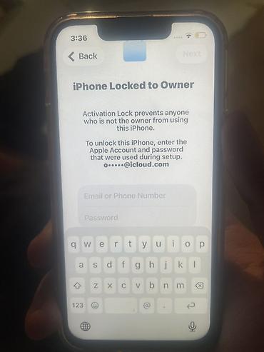 - Экран включается; на дисплее отображается сообщение «iPhone неразрывно связан с владельцем» (активация заблокирована iCloud).