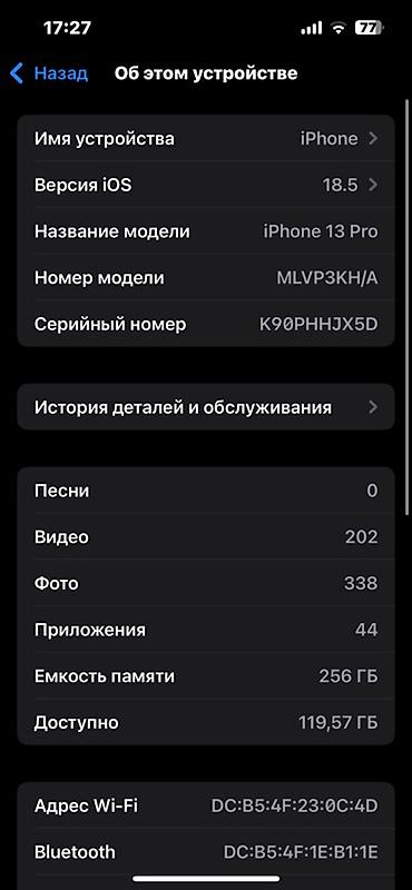 IPhone 13 Pro, 256 ГБ АКБ 75 Состояние хорошое ,ничего не меняли все родное