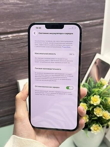 iPhone 13 Pro Max — большой яркий дисплей, премиальный дизайн и высокая производительность. Память 128 GB — удобно для фото, видео и приложений. Аккумулятор 84%, держит заряд уверенно 🔋