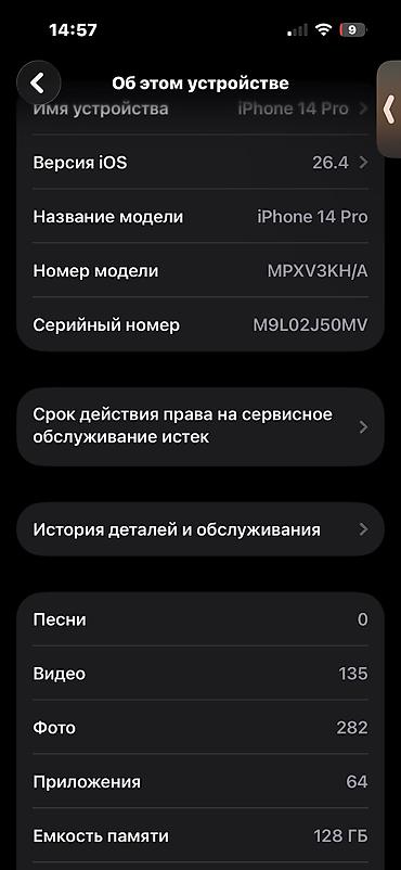 Продается IPhone 14 Pro 256, цвет Black Titanium (черный титановый) Телефон использовался очень аккуратно, в основном девушкой. Полностью оригинальный, ничего не вскрывалось и не ремонтировалось. ...