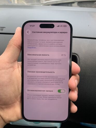 - Состояние аккумулятора по настройкам: максимальная ёмкость 91%, включена «Оптимизированная зарядка».