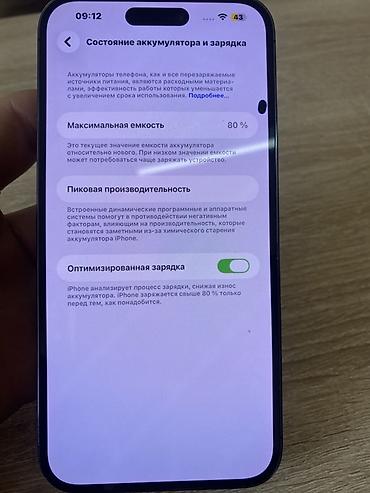 - Аккумулятор: максимальная ёмкость 80%, оптимизированная зарядка включена