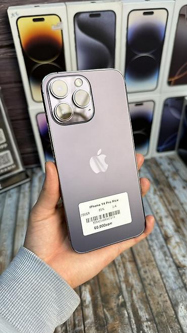 IPhone 14 Pro Max, Б/у, 256 ГБ, Deep Purple, Зарядное устройство, Защитное стекло, Чехол, В рассрочку, 85 %