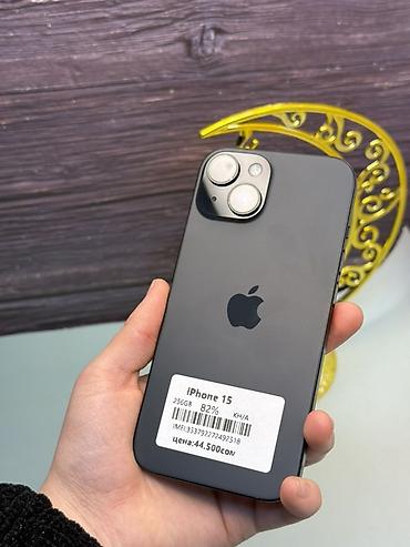 IPhone 15, Б/у, 256 ГБ, Черный, Зарядное устройство, Защитное стекло, Чехол, В рассрочку, 82 %