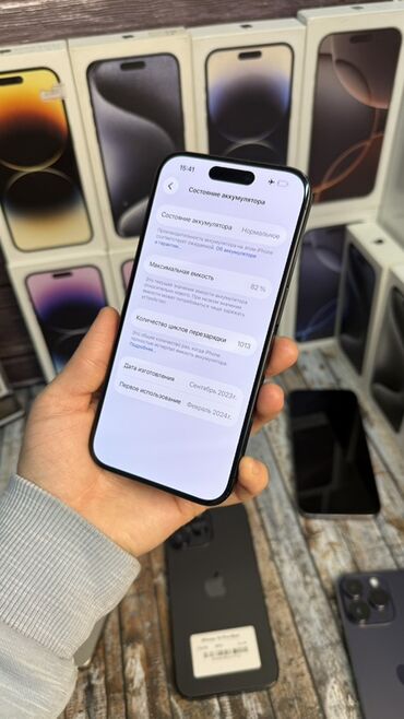 Комплектация на фото: устройство; на заднем плане — фирменные коробки линейки iPhone 15/15 Pro. Цвет на снимках — тёмный/серый.