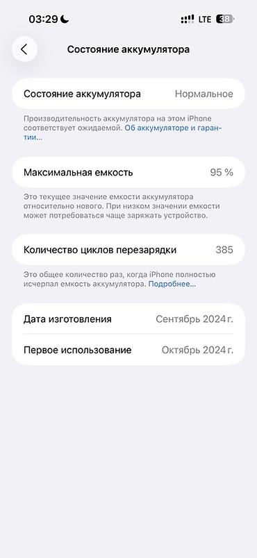 - Аккумулятор: состояние «Нормальное», максимальная ёмкость 95%