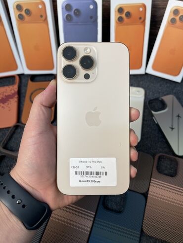 IPhone 16 Pro Max, Б/у, 256 ГБ, Desert Titanium, Зарядное устройство, Защитное стекло, Кабель, В рассрочку, 91 %