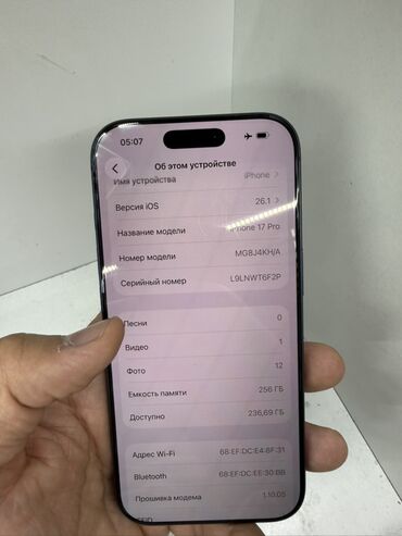 - Память: 256 ГБ (доступно ~236,7 ГБ на момент снимков экрана).