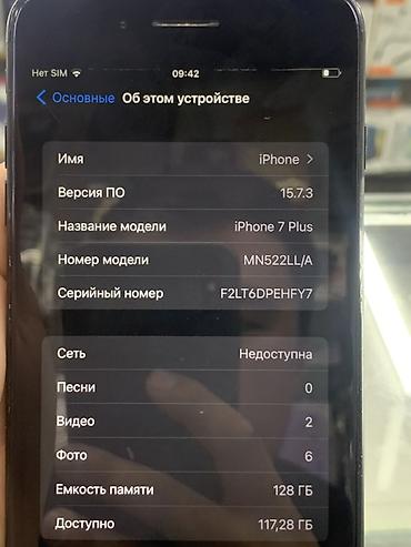 IPhone 7 Plus, 128ГБ, цвет Black Характеристики и детали: - Модель: iPhone 7 Plus (номер модели 3C178Z/A) - Память: 32 ГБ - Версия iOS: 15.8.5 - Дисплей 5.5" Retina HD с кнопкой «Домой» и Touch ID...