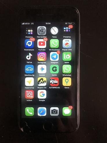 Состояние экрана и корпуса можно увидеть на фото: на дисплее и задней стеклянной панели есть трещины. Телефон включается, работает, сенсор и кнопка «Домой» активны, сеть ловит. Батарея и заряд отображаются, установлен ряд приложений.