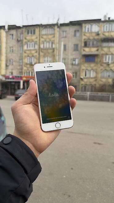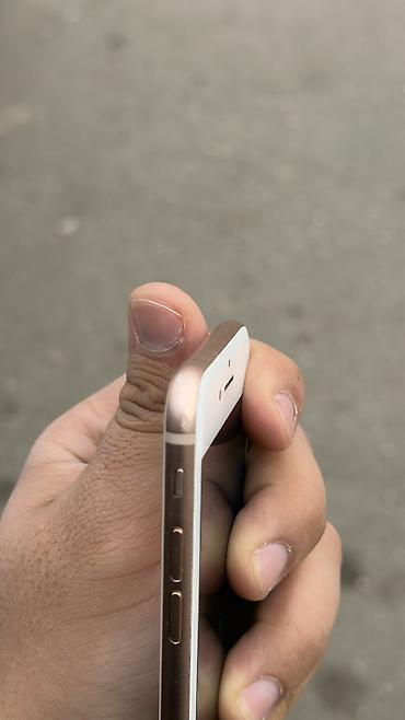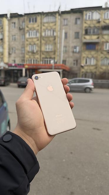Комплект и объём памяти на снимках не указаны. На экране — страница первичной настройки (Hello/Hola). Цвет и дизайн соответствуют iPhone 8 в золотистом исполнении.