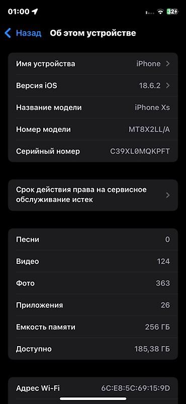 IPhone XS Max 256 ГБ, модель MT6L2LL/A, iOS 18.7.5 - Экран 6.5" Super Retina OLED, Face ID - Память: 256 ГБ (доступно ~242,87 ГБ) - Цвет: Space Gray (темно‑серый) - Двойная основная камера с оптич...