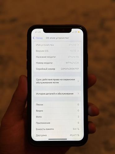 IPhone Xs, 64 ГБ, цвет Silver Характеристики и детали по фото: - Модель: iPhone Xs (номер модели MT962LL/A) - Память: 64 ГБ, доступно ~38,7 ГБ - iOS: версия 18.6 - Экран: OLED - Камеры: двойной о...