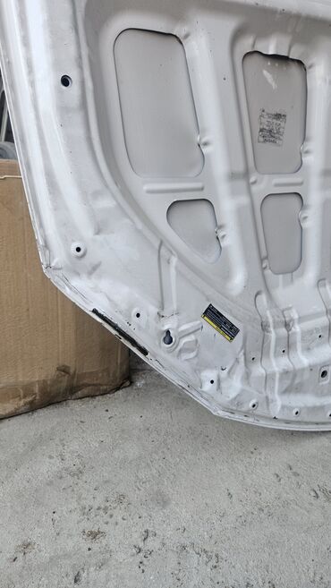 Капот для легкового автомобиля - Материал: металл - Цвет: белый - Конструкция с усилителями (крестообразные ребра жёсткости) - Внутренние точки крепления петель, фиксатора и газовых упоров/уплотни...