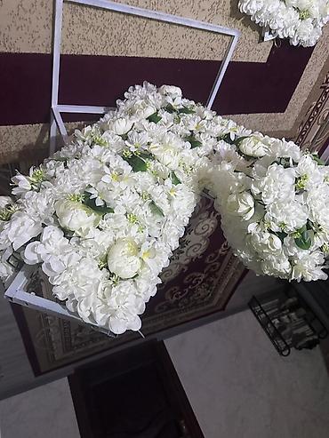 Каркасная арка-сердце с отделкой из искусственных белых цветов. -