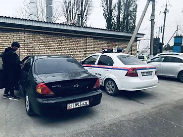 Kia Spectra, седан, темно-зелёный/чёрный цвет кузова. Номерные знаки KG (04/Г4, 993 AJE).