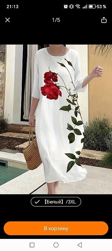 2) Белое летнее платье с принтом роз