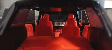 - Интерьер: салон с красной отделкой, видны сиденья и элементы панели