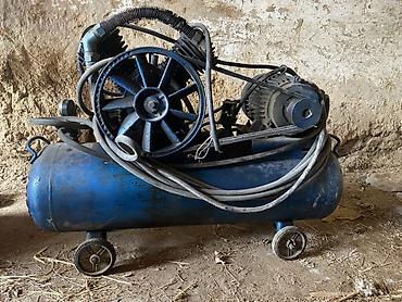 - Поршневой воздушный компрессор на ресивере с колесами для перемещения; ременной привод, электродвигатель, комплект шлангов.