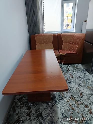 Цветовая гамма дивана и стола сочетается, комплект гармонично смотрится в интерьере. Дата на фото: 15.01.2026.