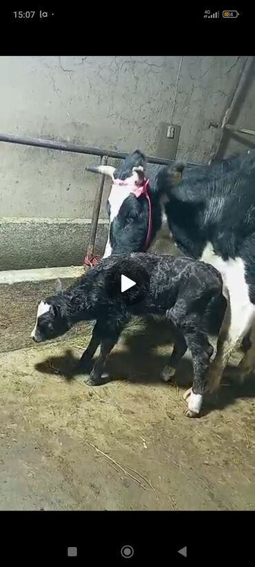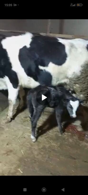- Окрол/отёл: на фото — свежий отёл, телёнок активный, самостоятельно встаёт и следует за матерью.