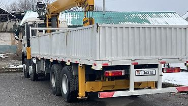 На фото — реальный автомобиль с установленной крановой установкой и бортовой платформой, готовый к выполнению погрузочно‑разгрузочных и транспортных задач.