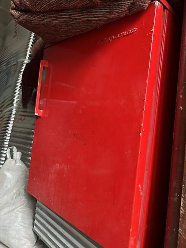 Мини-холодильник советского типа, одно-камерный, красного цвета.