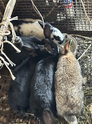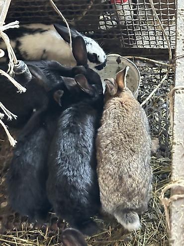 Кролики разных окрасов и размеров - Породы: помеси мясо-шкуркового направления (черные, серые, белые, пятнистые). - Возраст: молодняк и подросшие особи на откорм/разведение. - Окрас и тип шерсти: ...