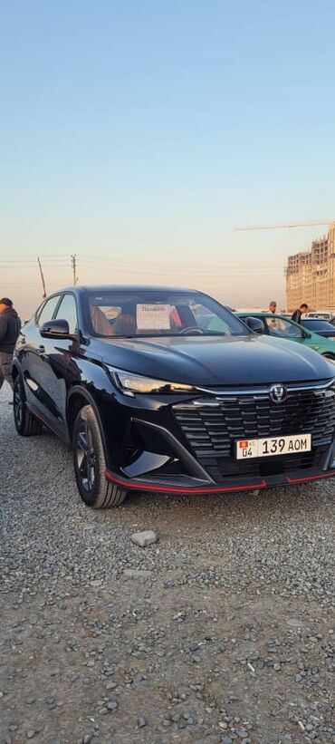 Кроссовер Changan X5 plus 2025года, с 0 пробегом – черный кузов, спортивный пакет с красными акцентами по периметру бамперов и порогов. Современная агрессивная оптика, крупная решетка радиатора, аэродинамичный спойлер на пятой двери.