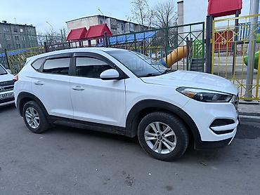 Hyundai Tucson, белый кроссовер (кузов SUV). Полный привод AWD. Легкосплавные диски, всесезонные шины. Дорожный просвет и пластиковый обвес по периметру для защиты кузова. Тонированные стекла, рейлинги на крыше.