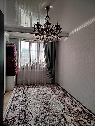 - Отдельная светлая комната с большим окном, плотными шторами и люстрой; стены с декоративной штукатуркой, натяжной потолок.