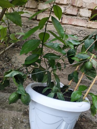 Лимонное дерево в горшке, готовое к выращиванию. Растение с зелеными листьями и уже сформировавшимися незрелыми плодами лимона. Отлично подходит для домашнего выращивания или украшения сада и террасы. Может быть высажено как в открытый грунт, так и содержаться в контейнере, приспосабливаясь к различным условиям. Обеспечивает свежие цитрусовые плоды прямо у вас дома.