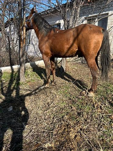 Бээ 5 жаш бооз колу буту соо ден соолугу чын жоош ! Лошадь (масть гнедая), вероятно кобыла, на привязи. Крепкий костяк, широкая грудь, выраженная мускулатура крупа. Конечности ровные, копыта т...