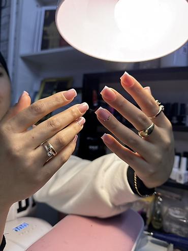 - Классический френч на квадратной/мягкой квадратной форме: аккуратная улыбка, ровная архитектура, нежная камуфлирующая подложка.