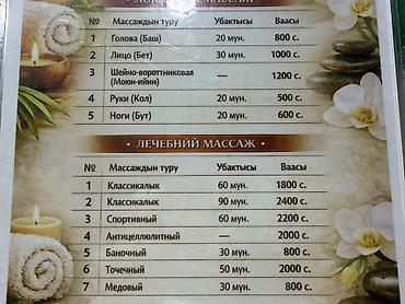 🌿 Саламатсызбы! Кандай массаж каалайсыз? Бизде төмөнкү түрлөрү бар: 💆 Лечебный массаж 🌸 Классикалык массаж 🍃 Антицеллюлиттик массаж 💪 Спорттук массаж 🫧 Баночтук массаж 🌺 Релакс (эс алуу) массажы ...