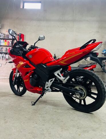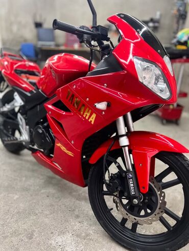 Спортивный дорожный мотоцикл в ярком красном цвете с обтекателями в стиле R6. Легкая и маневренная техника для города и пригородных поездок.