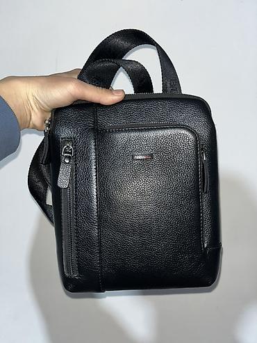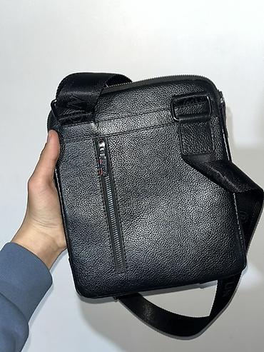 Мужские компактные сумки через плечо из черной фактурной кожи. Варианты: - COACH New York, прямоугольная форма, гладкая зернистая кожа. Внешний горизонтальный карман на молнии, фирменный логотип с...