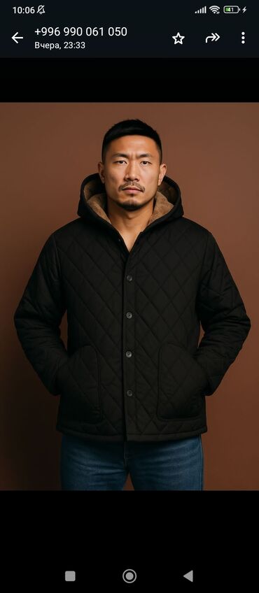 Купил за 4.400 Стеганая мужская куртка-пуховик, черная, с глянцевым