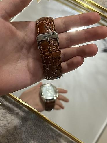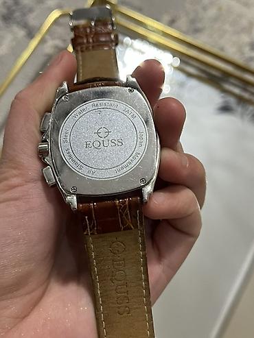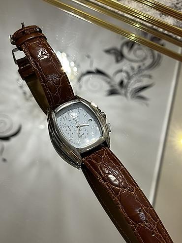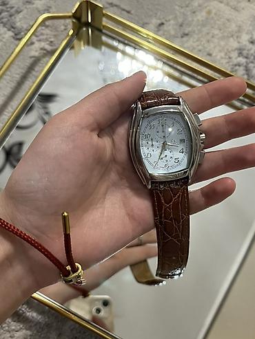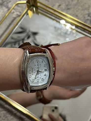 Стильные повседневные часы с функциями даты и хронографа, сочетание полированного стального корпуса и кожаного ремня. Подойдут под деловой и casual-образ. Размер корпуса — крупный, хорошо читаемый циферблат. Батарейка села, но часы рабочие
