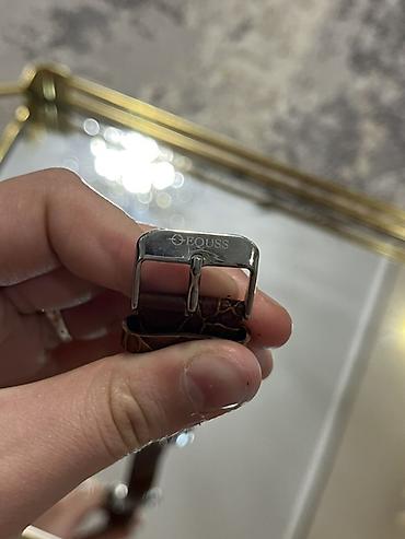 - Коричневый ремешок из натуральной кожи с фактурой под крокодила, классическая пряжка